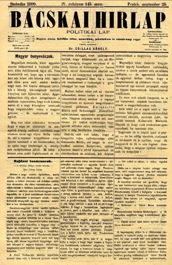Bácskai Hirlap, 4. évf. 1900. szeptember 28. 145. sz.