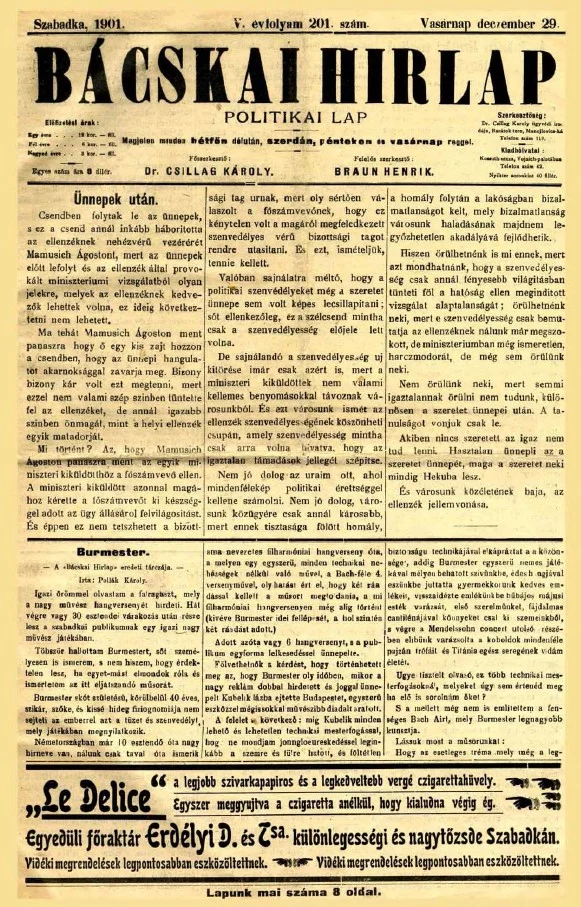 Bácskai Hirlap, 5. évf. 1901. december 29. 201. sz.