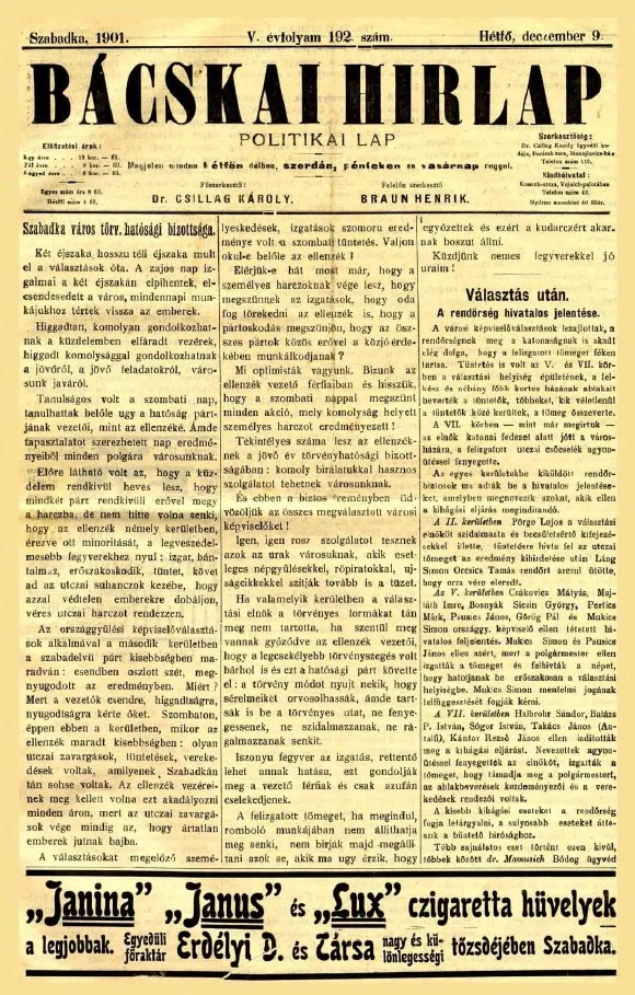 Bácskai Hirlap, 5. évf. 1901. december 9. 192. sz.