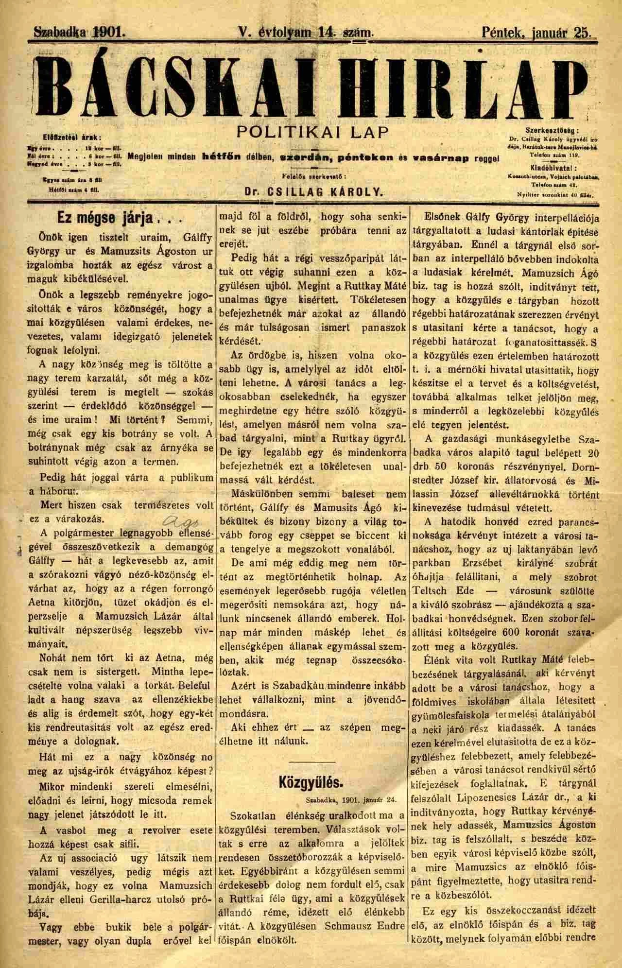 Bácskai Hirlap, 5. évf. 1901. január 25. 14. sz.