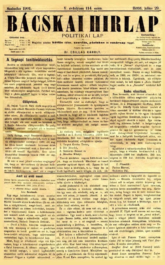 Bácskai Hirlap, 5. évf. 1901. július 29. 114. sz.