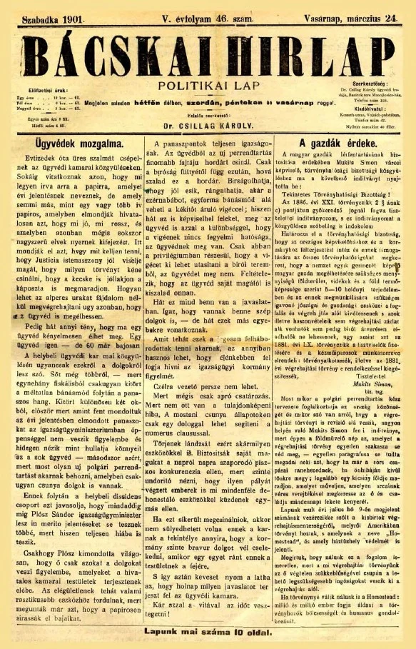 Bácskai Hirlap, 5. évf. 1901. március 24. 46. sz.