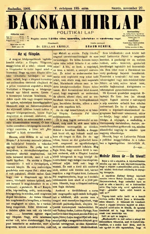 Bácskai Hirlap, 5. évf. 1901. november 27. 185. sz.