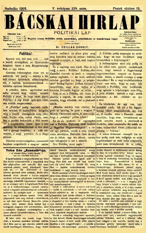Bácskai Hirlap, 5. évf. 1901. október 11. 158. sz.