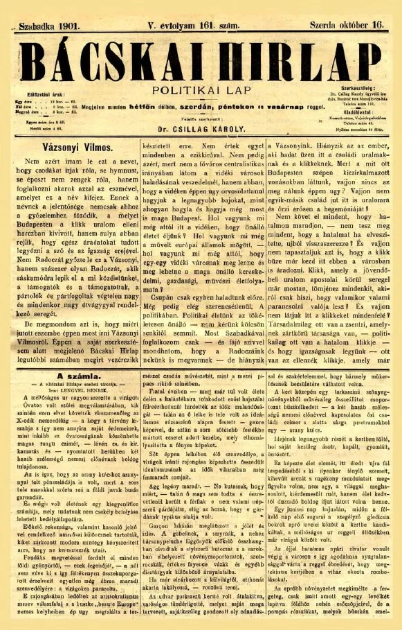 Bácskai Hirlap, 5. évf. 1901. október 16. 161. sz.