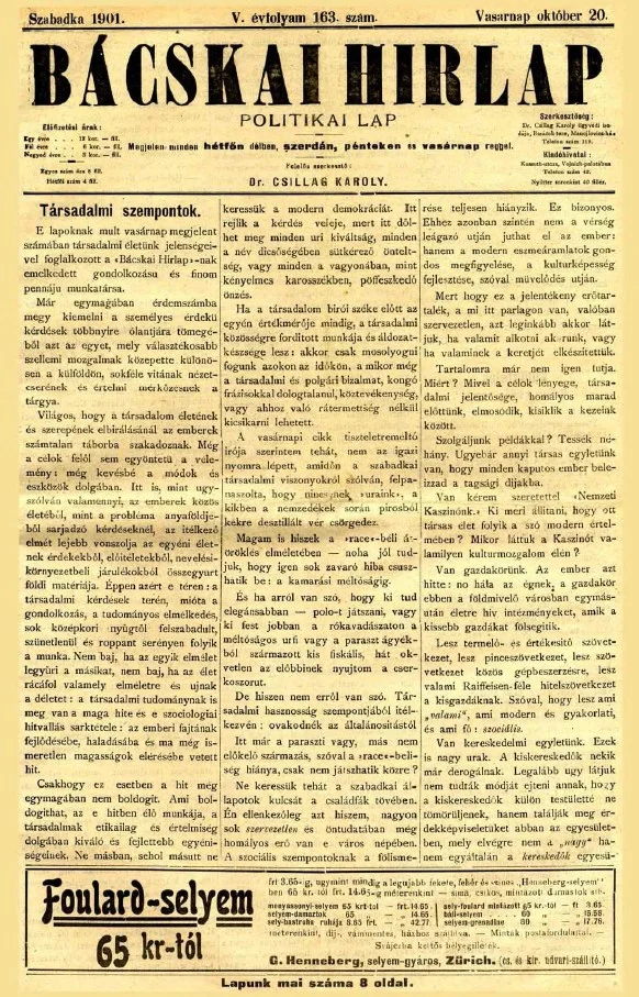 Bácskai Hirlap, 5. évf. 1901. október 20. 163. sz.