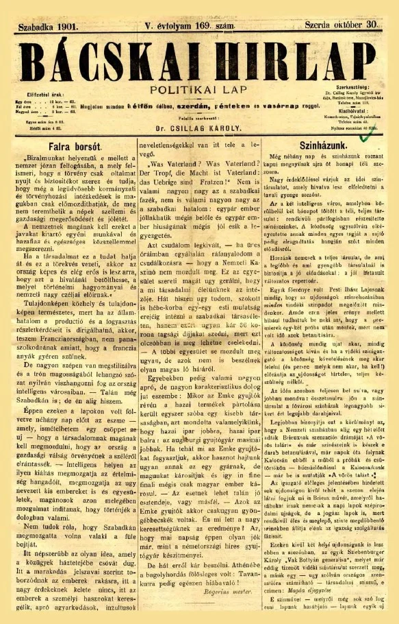 Bácskai Hirlap, 5. évf. 1901. október 30. 169. sz.