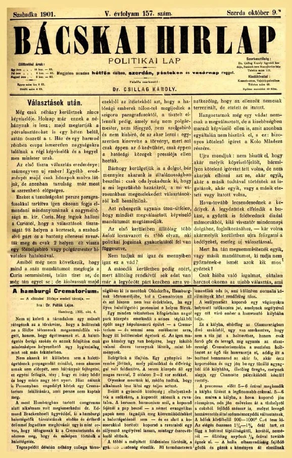 Bácskai Hirlap, 5. évf. 1901. október 9. 157. sz.