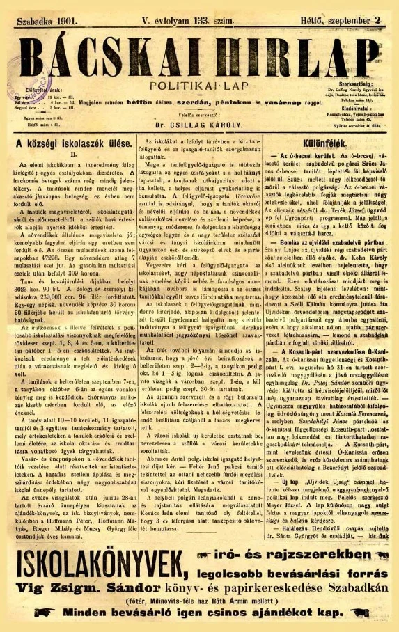 Bácskai Hirlap, 5. évf. 1901. szeptember 2. 133. sz.