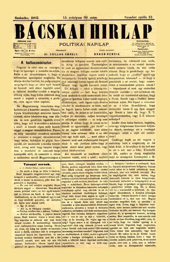 Bácskai Hirlap, 6. évf. 1902. április 12. 60. sz.