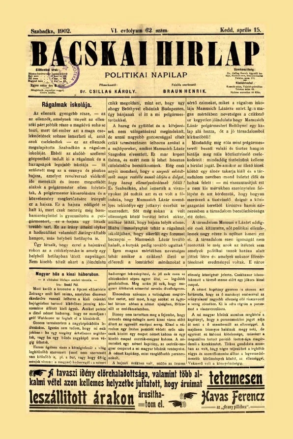 Bácskai Hirlap, 6. évf. 1902. április 15. 62. sz.