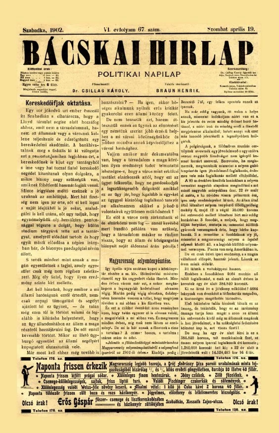 Bácskai Hirlap, 6. évf. 1902. április 19. 67. sz.