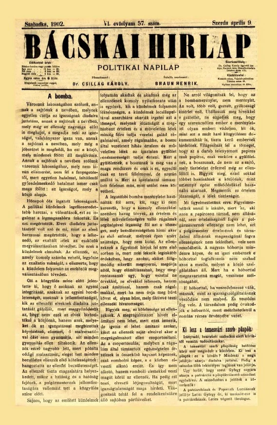Bácskai Hirlap, 6. évf. 1902. április 9. 57. sz.