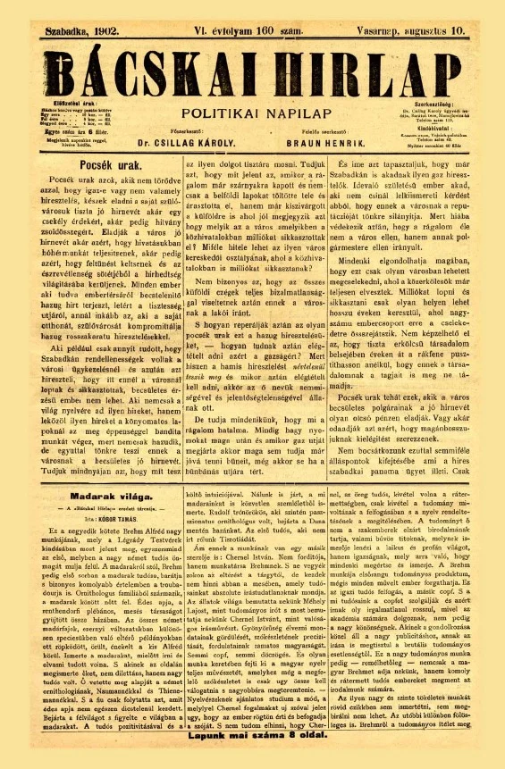 Bácskai Hirlap, 6. évf. 1902. augusztus 10. 160. sz.