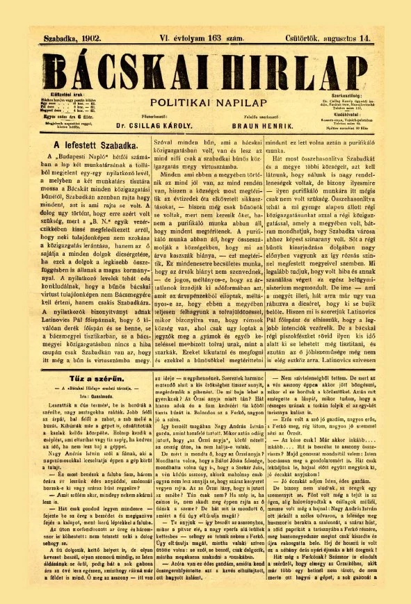 Bácskai Hirlap, 6. évf. 1902. augusztus 14. 163. sz.