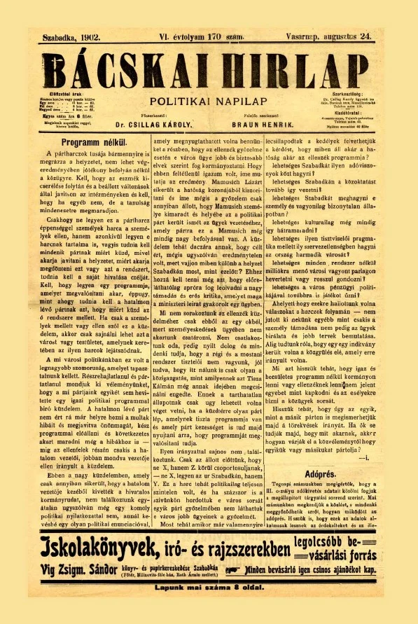 Bácskai Hirlap, 6. évf. 1902. augusztus 24. 170. sz.