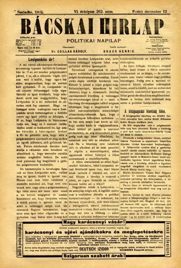 Bácskai Hirlap, 6. évf. 1902. december 12. 262. sz.