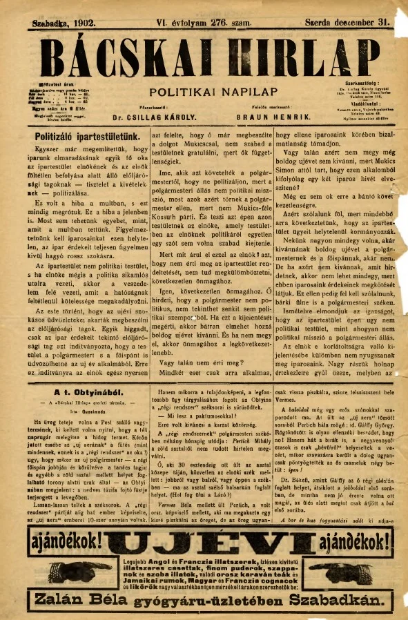 Bácskai Hirlap, 6. évf. 1902. december 31. 276. sz.