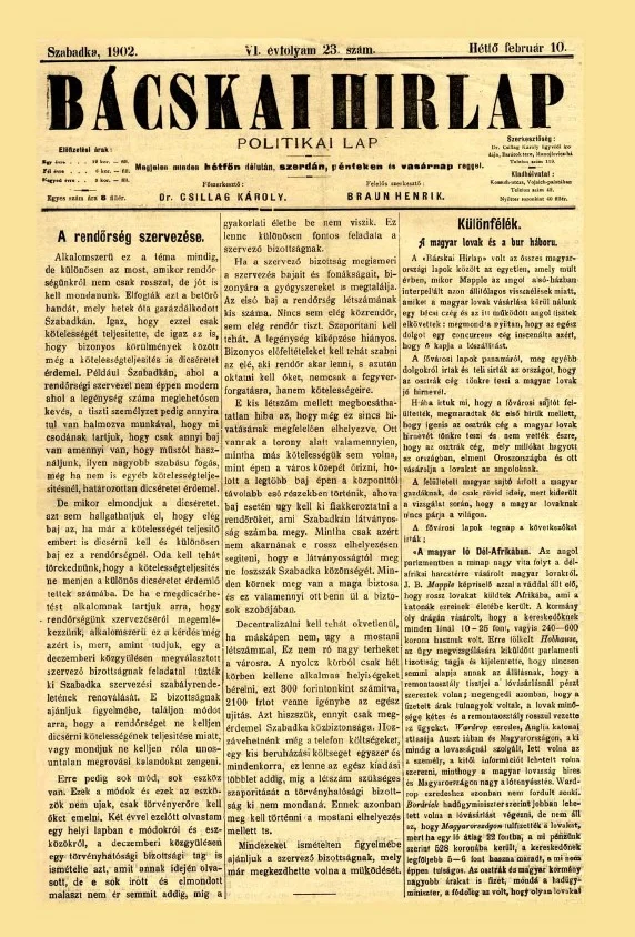 Bácskai Hirlap, 6. évf. 1902. február 10. 23. sz.