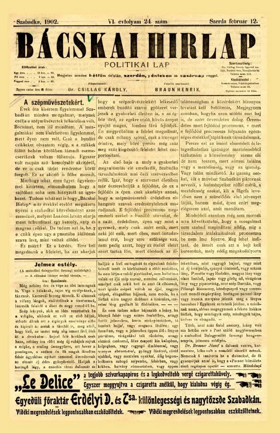 Bácskai Hirlap, 6. évf. 1902. február 12. 24. sz.