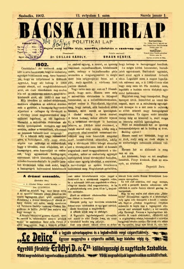 Bácskai Hirlap, 6. évf. 1902. január 1. 1. sz.
