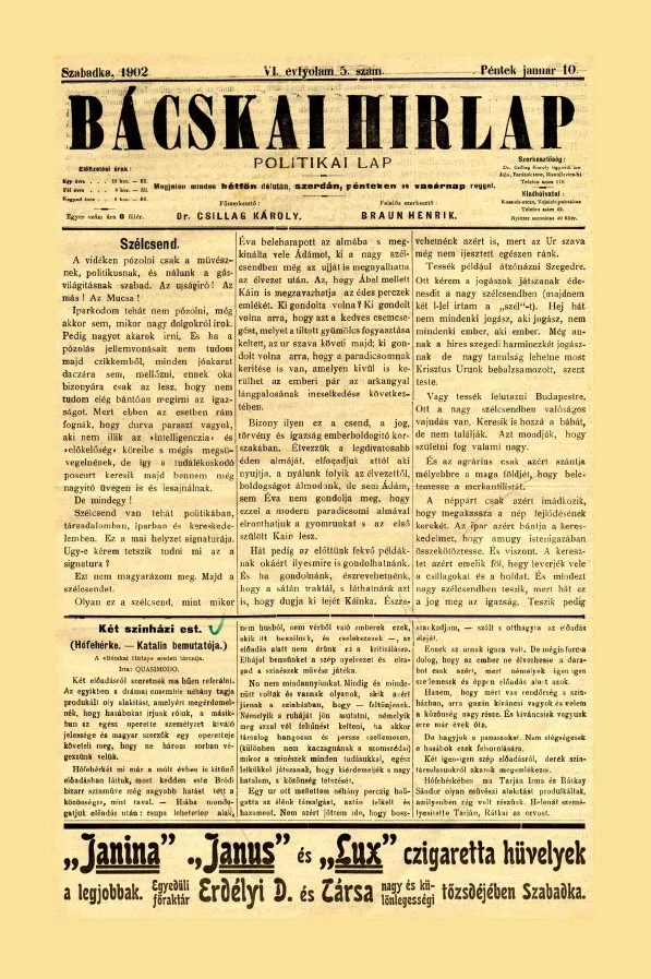 Bácskai Hirlap, 6. évf. 1902. január 10. 5. sz.
