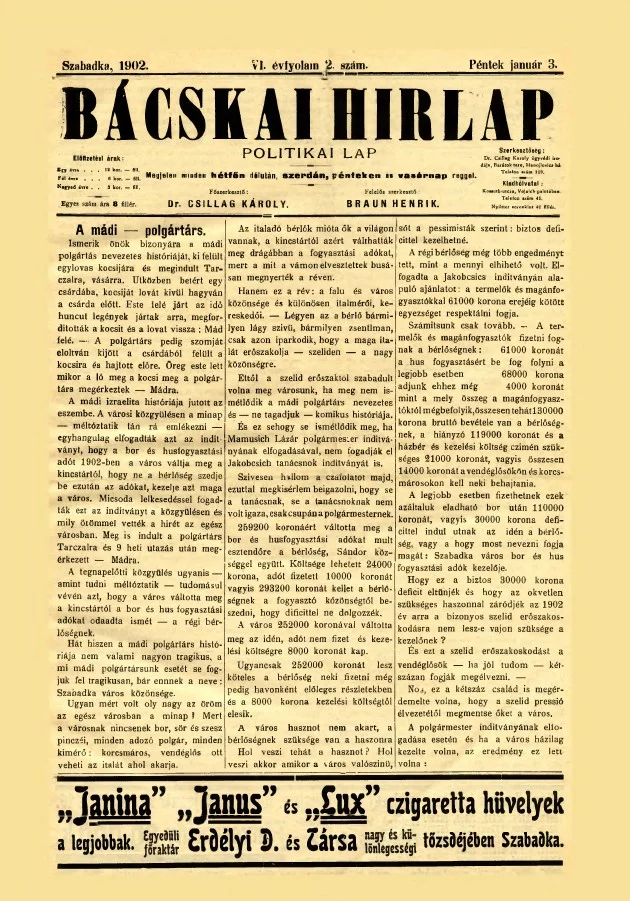 Bácskai Hirlap, 6. évf. 1902. január 3. 2. sz.
