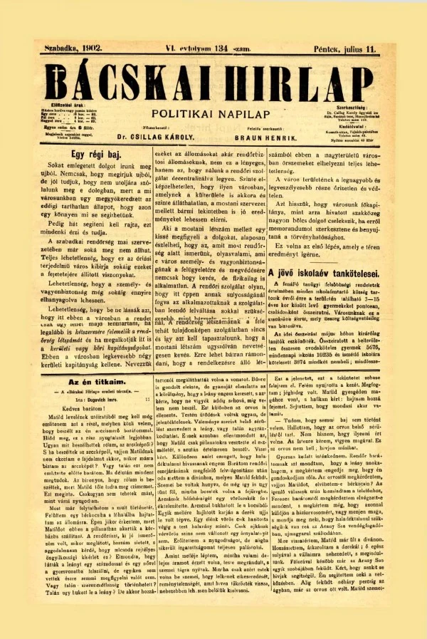 Bácskai Hirlap, 6. évf. 1902. július 11. 134. sz.