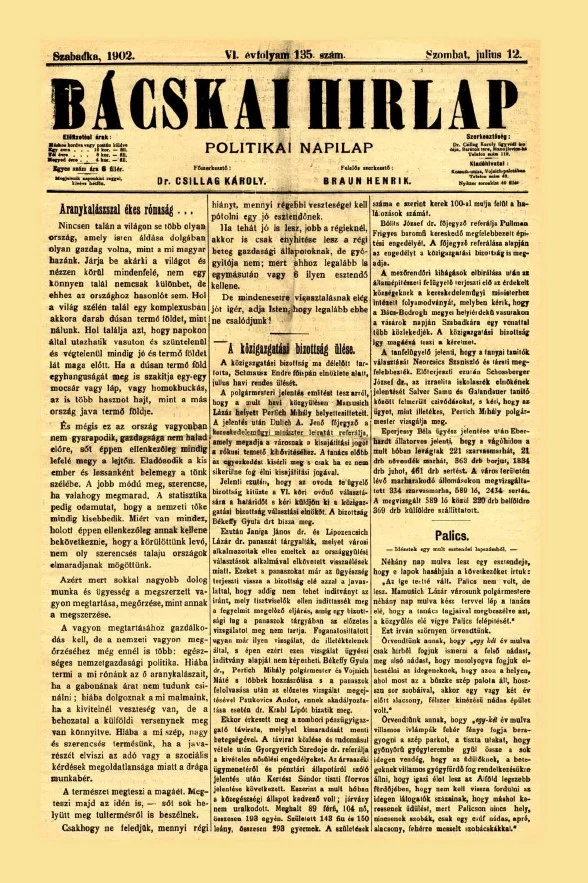 Bácskai Hirlap, 6. évf. 1902. július 12. 135. sz.