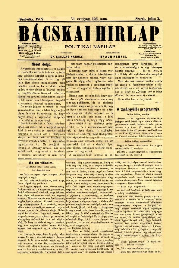 Bácskai Hirlap, 6. évf. 1902. július 2. 126. sz.