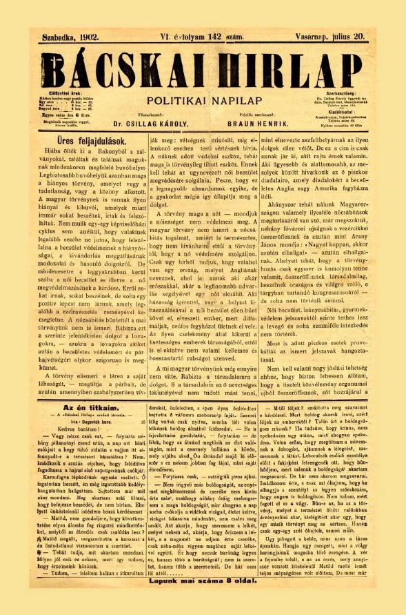Bácskai Hirlap, 6. évf. 1902. július 20. 142. sz.