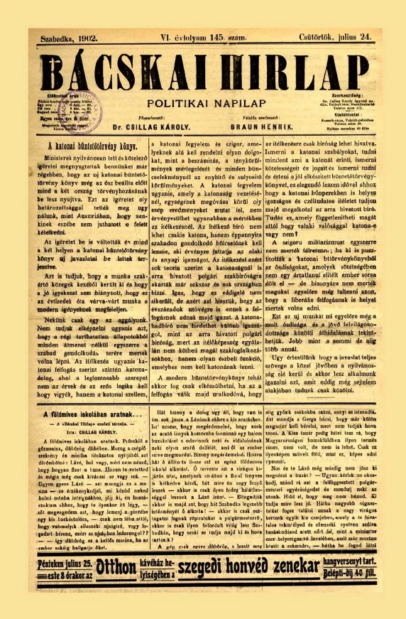 Bácskai Hirlap, 6. évf. 1902. július 24. 145. sz.