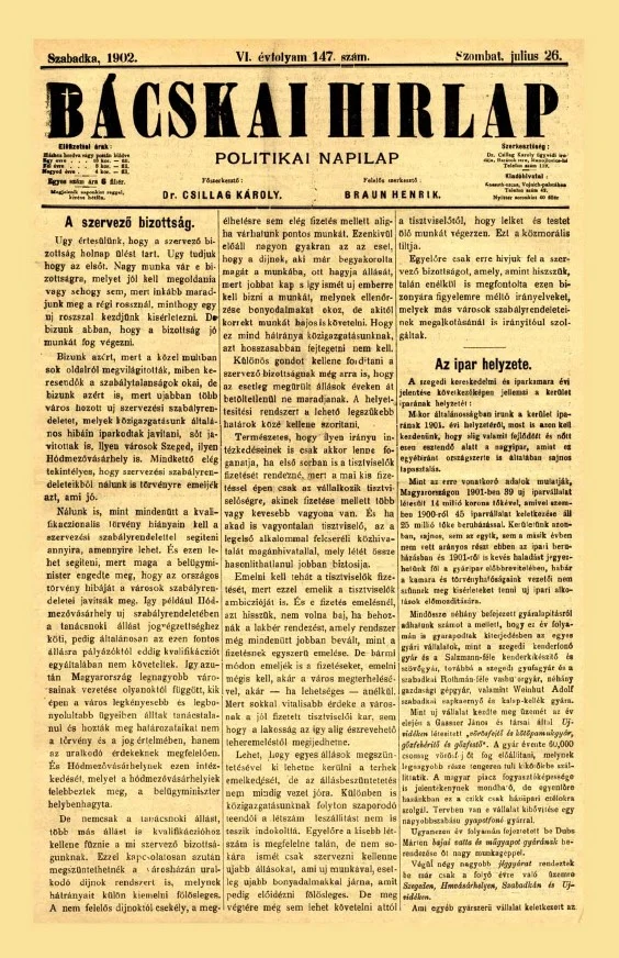 Bácskai Hirlap, 6. évf. 1902. július 26. 147. sz.