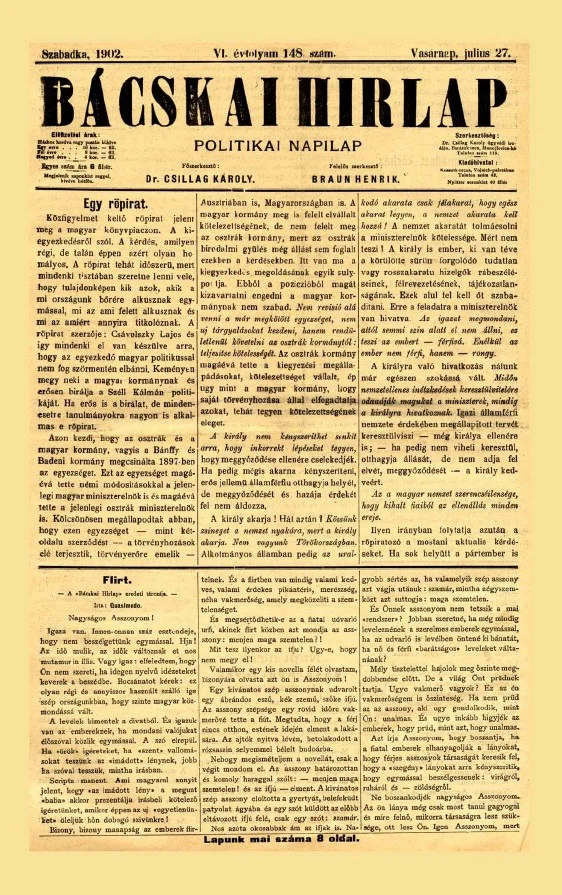 Bácskai Hirlap, 6. évf. 1902. július 27. 148. sz.
