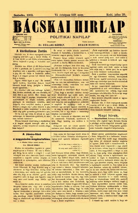 Bácskai Hirlap, 6. évf. 1902. július 29. 149. sz.