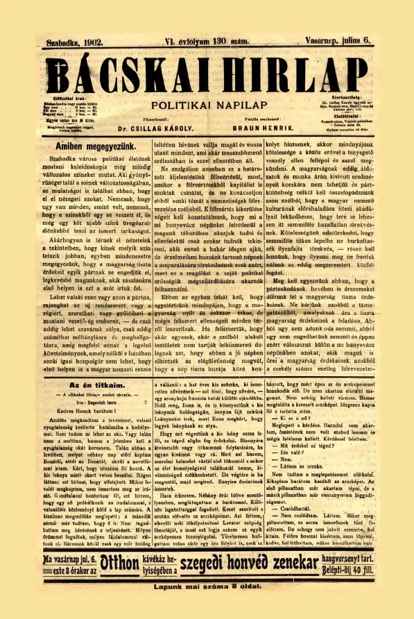 Bácskai Hirlap, 6. évf. 1902. július 6. 130. sz.