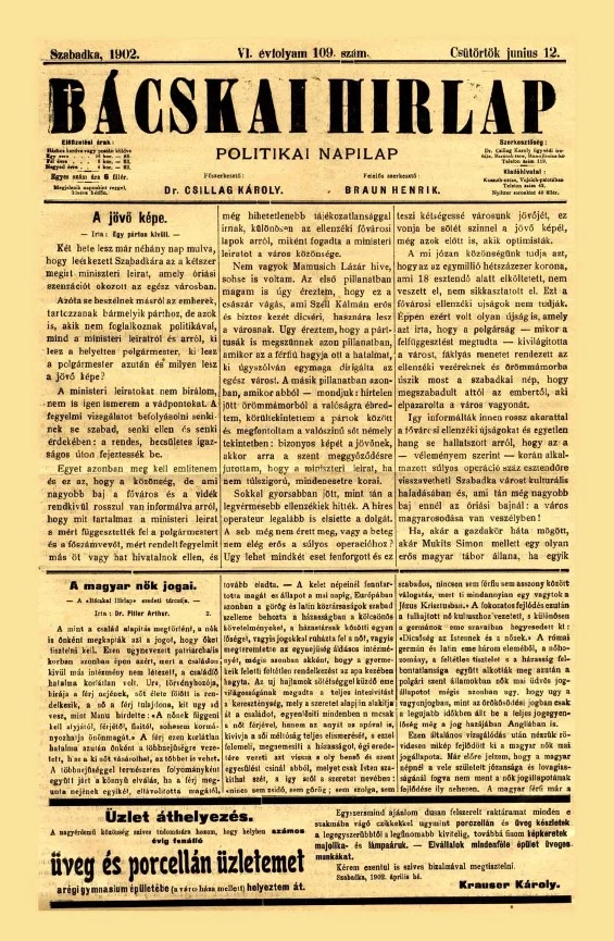 Bácskai Hirlap, 6. évf. 1902. június 12. 109. sz.