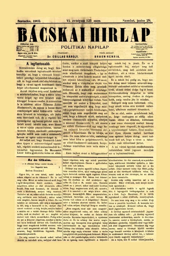 Bácskai Hirlap, 6. évf. 1902. június 28. 123. sz.
