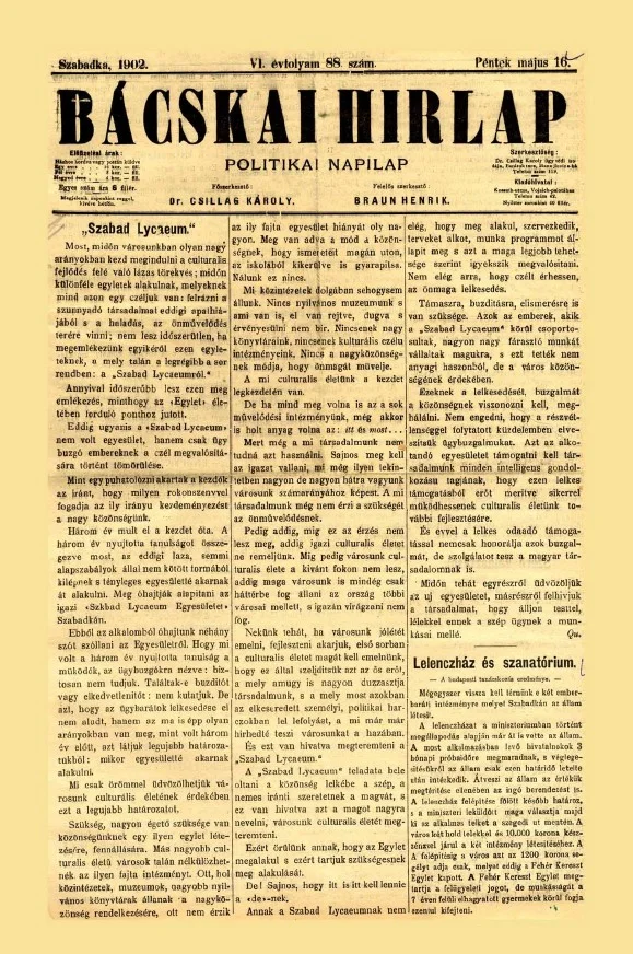 Bácskai Hirlap, 6. évf. 1902. május 16. 88. sz.