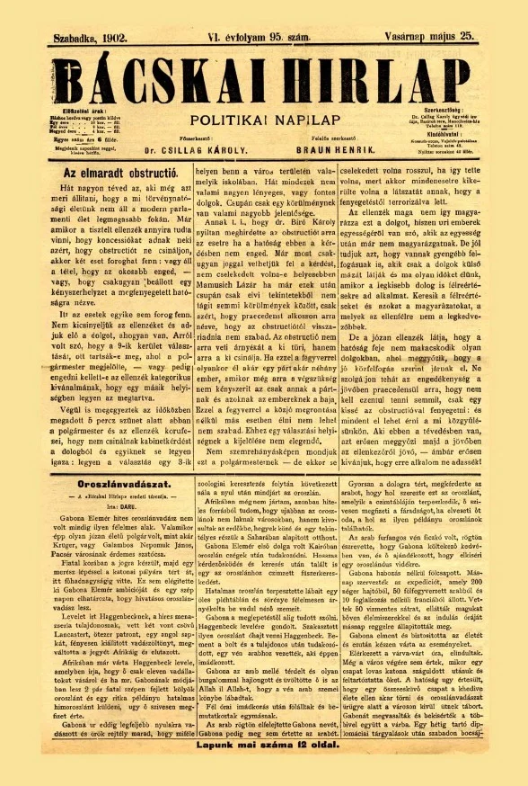 Bácskai Hirlap, 6. évf. 1902. május 25. 95. sz.