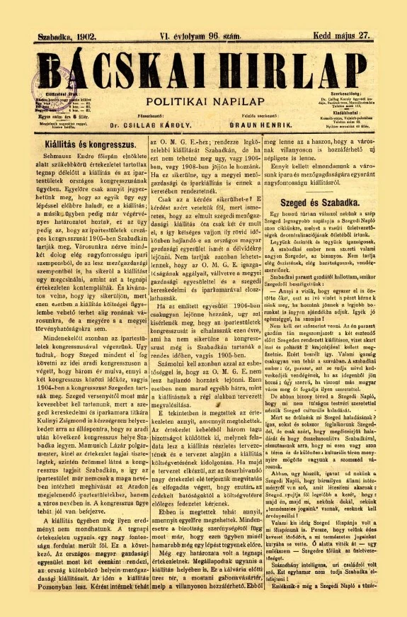 Bácskai Hirlap, 6. évf. 1902. május 27. 96. sz.
