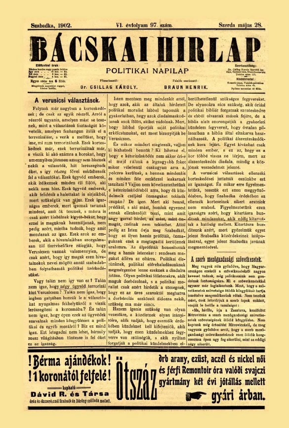 Bácskai Hirlap, 6. évf. 1902. május 28. 97. sz.