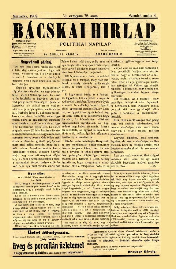 Bácskai Hirlap, 6. évf. 1902. május 3. 78. sz.