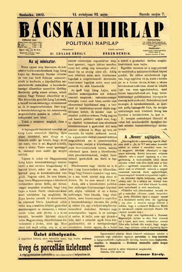 Bácskai Hirlap, 6. évf. 1902. május 7. 81. sz.