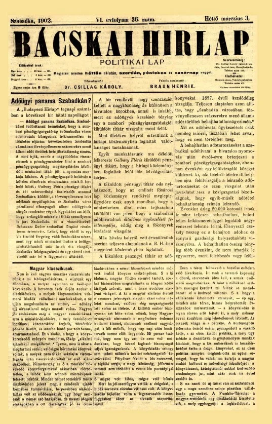 Bácskai Hirlap, 6. évf. 1902. március 3. 36. sz.