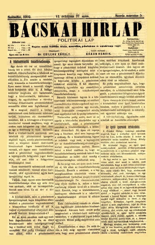 Bácskai Hirlap, 6. évf. 1902. március 5. 37. sz.