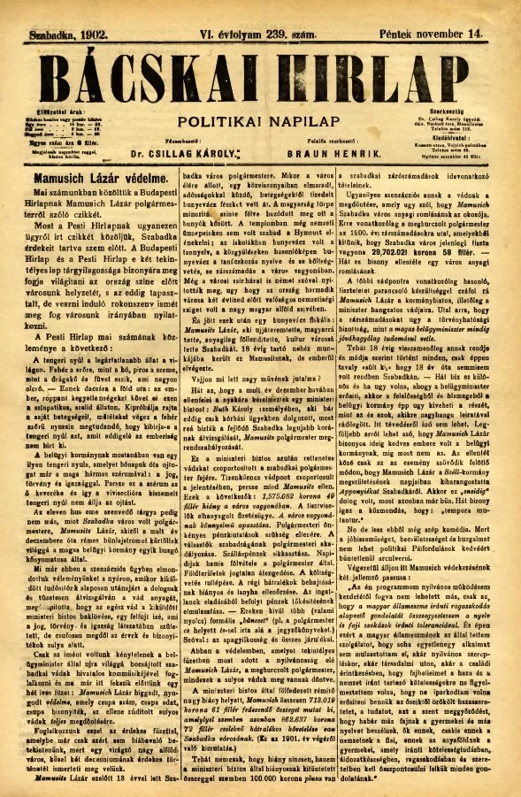 Bácskai Hirlap, 6. évf. 1902. november 14. 239. sz.