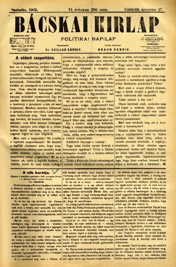 Bácskai Hirlap, 6. évf. 1902. november 27. 250. sz.