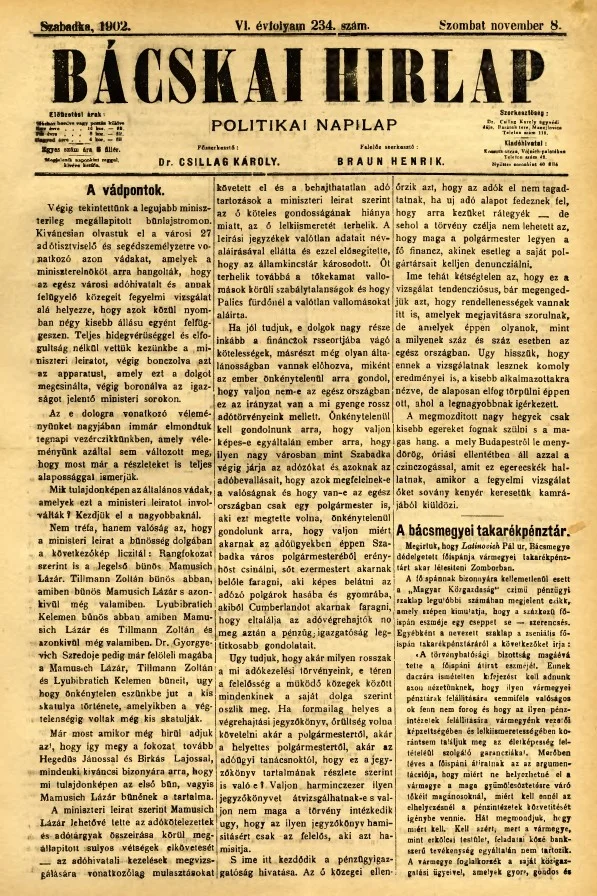 Bácskai Hirlap, 6. évf. 1902. november 8. 234. sz.