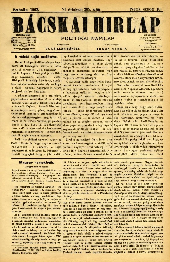 Bácskai Hirlap, 6. évf. 1902. október 10. 209. sz.